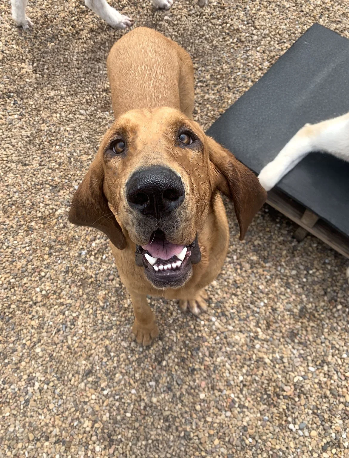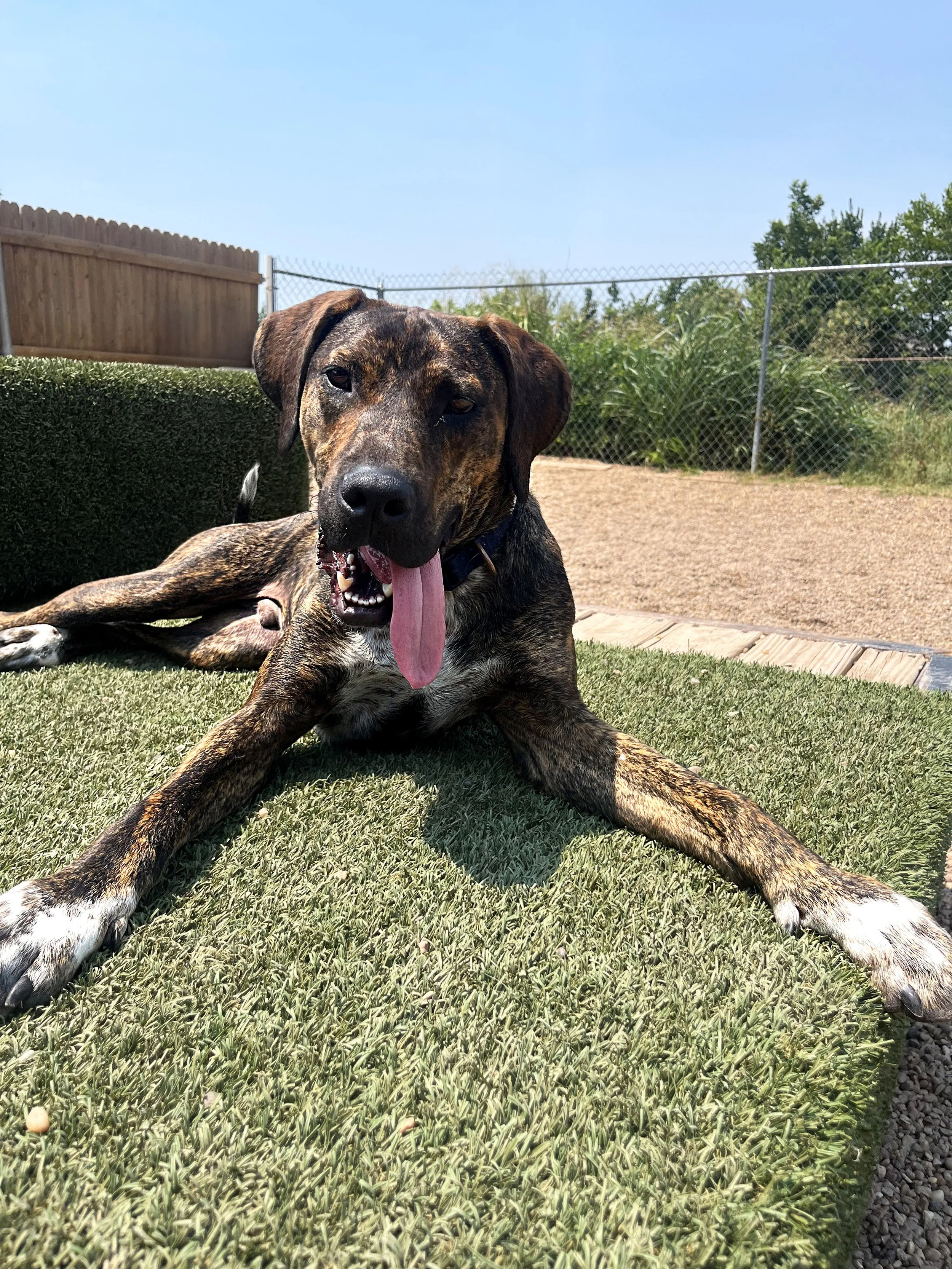 Baxter is an approximately 21-month-old male Hound/Catahoula mix who will weigh 55-60 lbs. fully grown (best guess). Baxter is extremely smart boy! He has lots of energy to go for runs, play with other dogs, or maybe even be trained to help hunt!