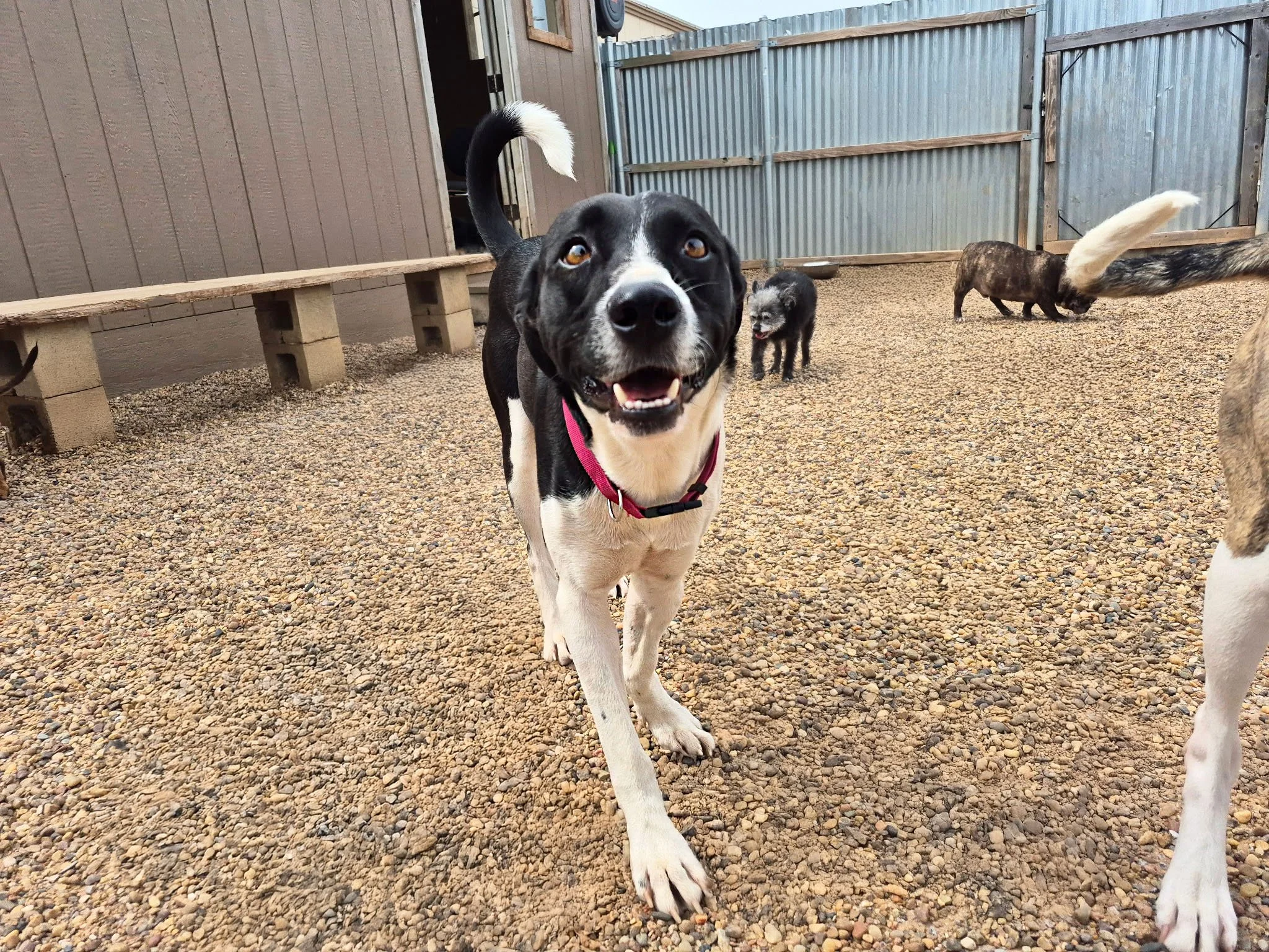 Kate is an approximately 2.5-year-old female mixed breed. She weighs around 80 lbs. Kate is the sweetest thing! Although she is on the bigger side, she is very gentle. Great with kids, other dogs, and cats. She is a bit of an attention seeker and would love to be a lap dog!
