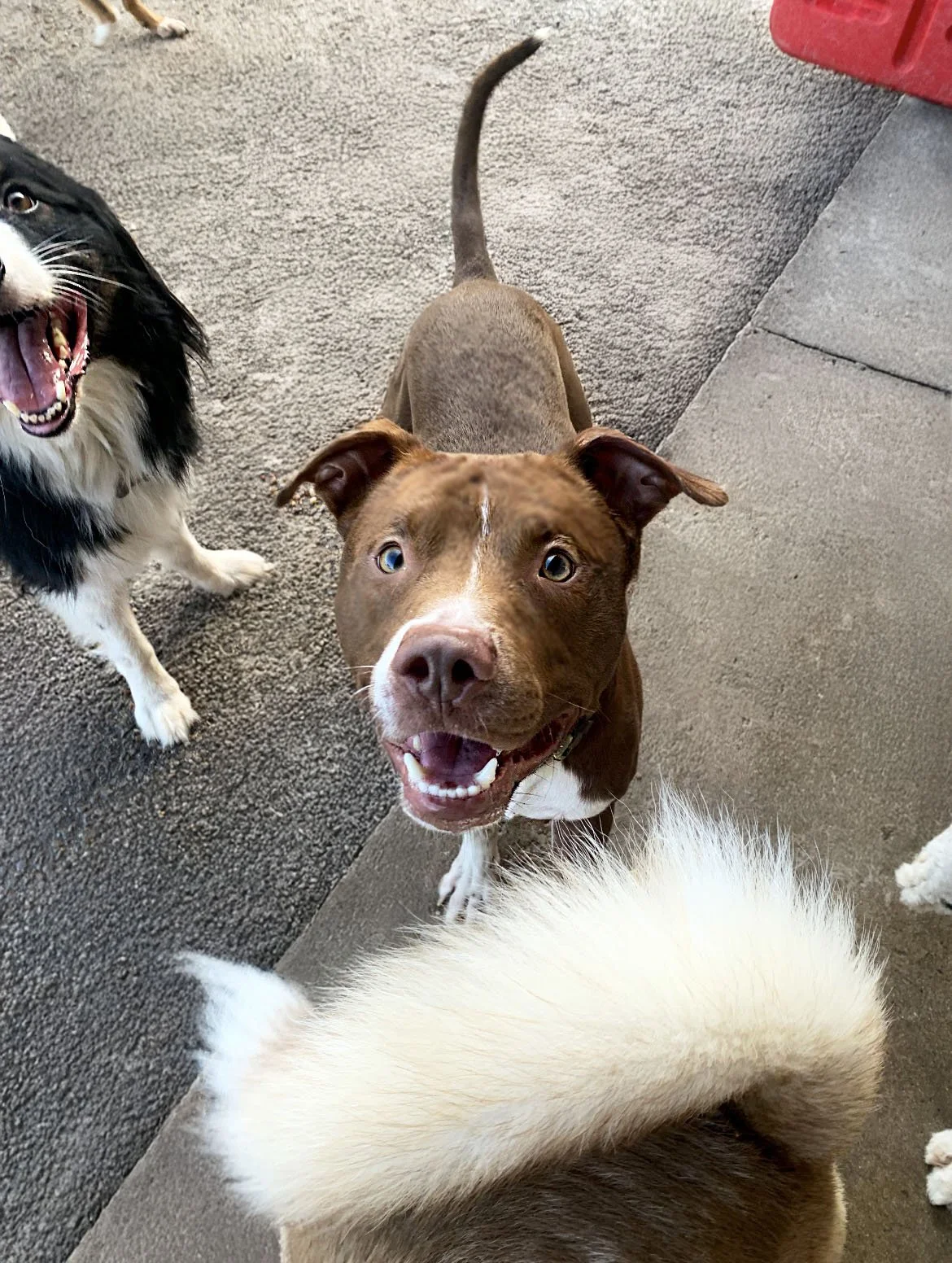 Jax is an approximately 22-month-old male Staffordshire Terrier and weigh around 50 lbs. Jax is an incredibly affectionate and loyal dog with lots of energy and love to give. I enjoy being active and playful, and I am always up for an adventure with my best human friends.